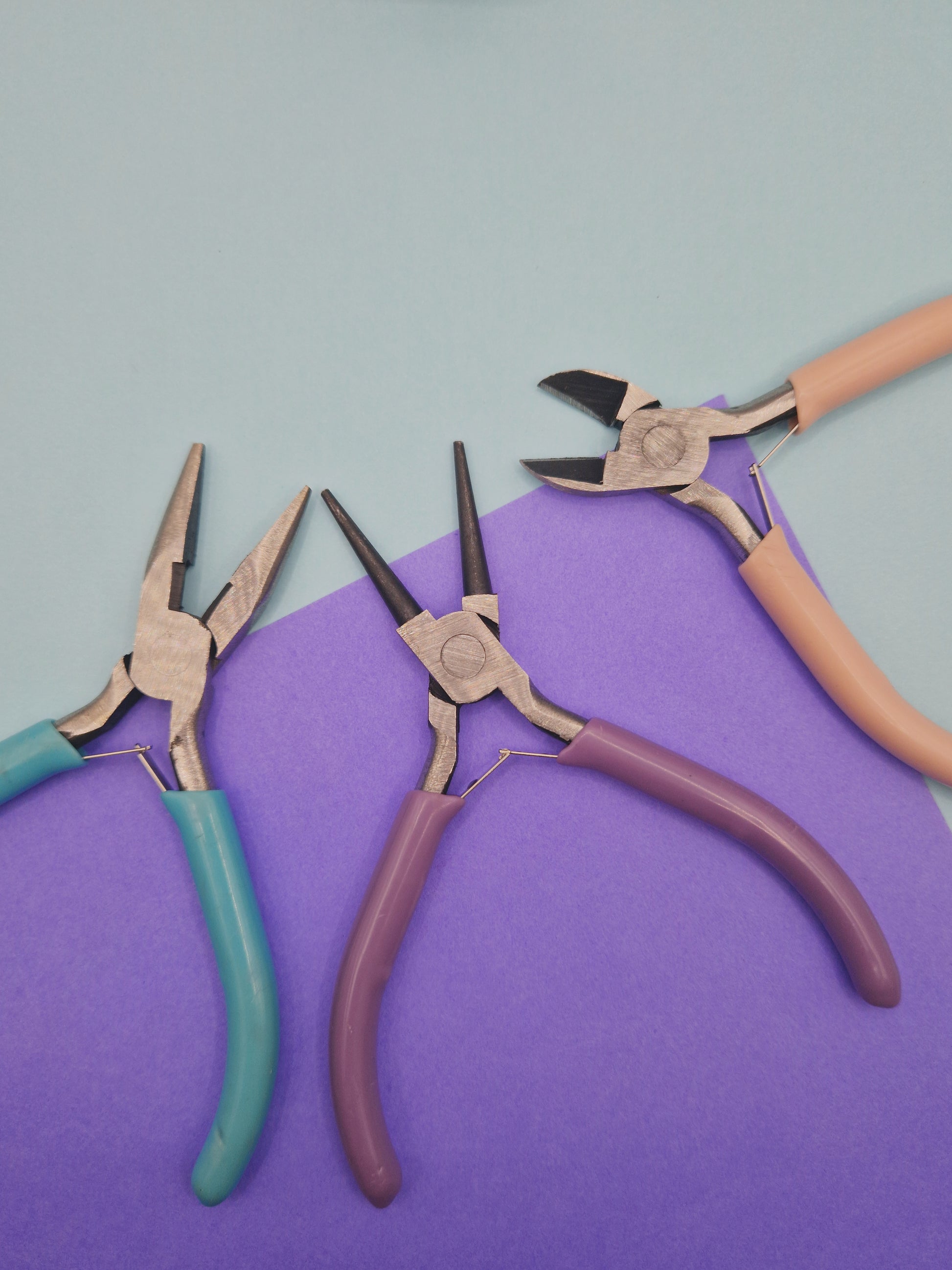 Lot de 3 pinces essentielles : plate, coupante et ronde. L’ensemble idéal pour créer, assembler et travailler tes bijoux avec précision. Un kit pratique pour débuter ou compléter ton atelier.